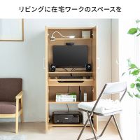 100-LCK016は、前面に観音開きの扉を備え、使わないときはPCや書類、かばんなどを収納しておけるデスク。作業時は扉がパーティションの役割を果たすほか、棚板は高さ調整が可能です。