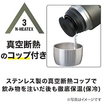 従来の保温ステンレスボトル「HEATEX」を改良。本体上部からの放熱をシャットアウトする新構造に仕上げています。本体キャップを兼ねるコップは真空断熱構造を採用。ボトル上部からの熱を逃がさないだけでなく、飲み物を注いだ後も保温できます。