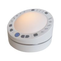 焚き火やホワイトノイズなど10種類の環境音を再生できるスピーカー。幼児の寝かしつけや、快眠、作業に集中したいときに使うと効果的。単三形乾電池またはUSBにより給電。本体手前の電源ボタンを入れ、左右どちらかの音声ボタンを押すと、内蔵された環境音が背面のスピーカーから再生されます。