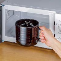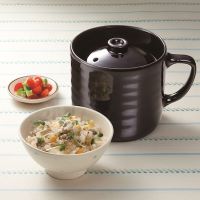 レンジで1合分の炊飯ができる陶器のマグカップ。内側に電子レンジ用発熱材を採用し、高温加熱でしっかり炊き上げる。容量は約0.8Lです。1合あたりの加熱時間は約10分。700W以下の電子レンジで使用可能。オーブン、IHには非対応です。