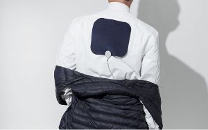 発熱素材である銀ナノインクをブランケット内部のフィルムシート(TPUフィルム)全体に印刷した、薄さ1mmで重さ60gのフィルム型ヒーター。モバイルバッテリーなどから給電することで、最高50℃まで温めることができます。同梱のベルクロテープを本品の4つの角に貼り、のり付け部を服に貼り付けて使う。あとは本体のUSBケーブルをモバイルバッテリーに繋げて、リモコンの電源をオンにします。