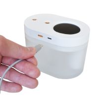 USB充電式でケーブルレスで使えるので、置き場所に困らない。充電時間は約3時間で、稼働時間は6時間。また6時間動作しない場合は、自動で電源がオフになります。