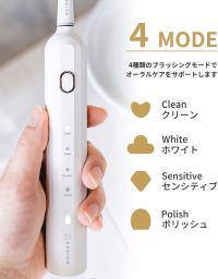 また⻭のコンディションにあわせて選べる4つのモードを搭載。⻭を隅々まで磨き上げる標準モード「Clean」、⻭の表面を白く磨き上げる「White」、⻭茎を傷めず優しくブラッシングする「Sensitive」、より丹念に磨き上げる「Polish」をボタン一つで切り替えることができます。