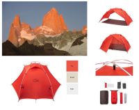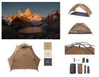 「El Chalten」シリーズは、フライとインナー、フットプリントが連結されていて、一度に設営できる一体型構造の軽量ダブルウォールテント。前後2か所には大きな入口と前室があり、インナーテントの素材には通気性を保ちながら結露がほとんど発生しないモノフィラメントを採用しています。