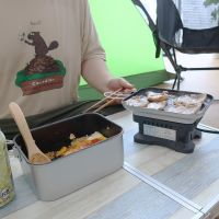 メスティンとはアルミ製の飯ごうを指し、炊く/煮る/焼く調理ができます。満水容量は1.4L(最大水位1L)で、最大1.5合までの炊飯が可能。またレトルトパウチがちょうど入るサイズで、効率よく温められるとのこと。