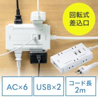差込口が90度回転する電源タップ(AC出力×6とUSB×2)