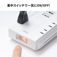 どちらも各コンセントの差込口が90度回転する電源タップ。USBは1ポートあたり2.4Aまで、2ポート合計で最大3.4A出力が可能。使用しないときはスイッチを押すことで一括で電源を切れるほか、1,400W以上の出力で自動オフになる自動ブレーカー機能を搭載しています。