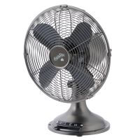 スタンド型の「クラシコスタンド扇風機(AC蓄電)」は、レトロなパーツと丸みを帯びたフォルムが特徴。風量調節は3段階で、作動時間は約5~14時間。左右首振り機能を備えています。