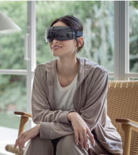 16個の突起が目元を刺激するアイマスク型製品。パソコンやスマートフォンで疲れた目を癒すとのこと。ヒーター機能でホットアイマスクとしても使用でき、Bluetooth機能で音楽を聴きながらの利用も可能。