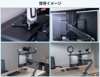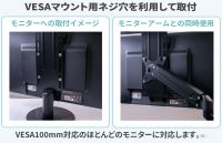 モニター背面のVESAマウント用のネジ穴を利用することで、デスク上のスペースを使わずに、カメラやマイク、LEDなど様々な機材を省スペースに設置することが出来ます。モニターアームと併用して使うことも可能です。