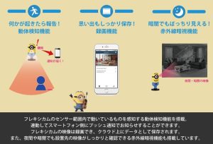 ミニオンズの見守りカメラ。通話やボイス機能付き