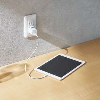 テコの原理で、レバーを軽く押すだけでコンセントから抜くことができるUSB Type-C充電器。子どもや高齢者といった力の弱い人でも容易にコンセントから抜くことができるとのこと。USB PDに対応し、最大出力は20Wで、タブレットの充電に向いています。