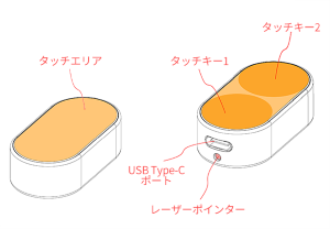 下のキーを長押しすると、先端から赤いレーザーが出せます。ボタンを押すことでスライドを前/後に切り替えることもできます。センサーは光学式で、Bluetooth 5.0接続に対応。バッテリ容量は180mAhで、USB Type-Cで充電します。