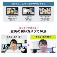 ノートPC内蔵のWebカメラも含め、多くのWebカメラはテレビ会議などで背景が広く映ってしまうため、部屋の中を見られたくないユーザーはバーチャル背景などを使って対処する必要がありました。しかし画角が35°しかないこのカメラならば、背景を映そうとしても映り込みにくいことから、バーチャル背景を使わなくとも、また、テレビ会議中にうっかりバーチャル背景がオフになってしまう事故があっても、一定のプライバシーは守られます。