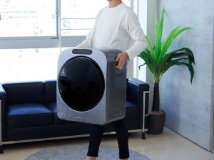 コンパクトサイズの衣類乾燥機。マンションや狭いアパートでも置き場所に困らない大きさながら、最大3kgの衣類を乾燥できます。排水設備が不要のため、コンセントをつなげばすぐに使用可能。なお、アース線の使用を推奨しています。