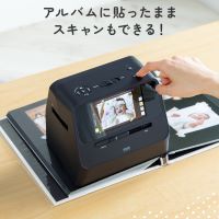 35mmフィルムや110フィルム、126フィルム、スライドフィルム、印刷した写真をデータ化できるスキャナー。画像はjpg形式で、SDカードに保存します。解像度は、フィルムが3,200dpi、写真が700dpi。