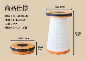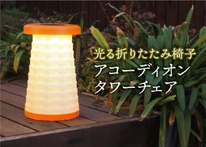 アコーディオンのように折り畳める椅子。LEDを搭載し椅子全体が光るため、ランタンとしても使うことができます。1秒で開閉でき、手軽に使える点も特徴。高さは11段階で調節可能。最大展開時は高さ42cmとなるため、子供から大人まで座れます。耐荷重は180kg。