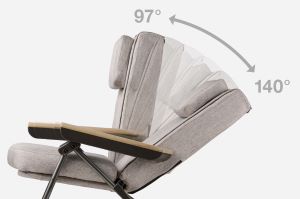 97度から140度まで6段階でリクライニングします。背面にヒーター機能も備え、効率的にマッサージ可能。ヒーターは15分の自動オフタイマーを搭載。マッサージチェアを使用しないときは、折りたたんで収納。折りたたみ時は奥行きが約25cmの薄さになります。