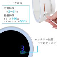 電源は充電式。約2~3時間で充電完了、フル充電でディスペンサー約500回使用することができます。バッテリーの残量表示も一目瞭然です。