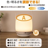 本体の操作は、シェード上部を指3本で軽く2回叩くことで点灯/消灯、点灯中にシェード上部に触れ続けると無段階調光できる。調色は本体下部の調色ボタンで「電球色/温白色/昼白色」の3段階に切り替えられる。連続点灯時間は約3.5~約22時間。充電時間は約3.5時間。バッテリー容量は1,800mAh。給電スタンドを使わず、本体底部に直接USBケーブルを接続することも可能。