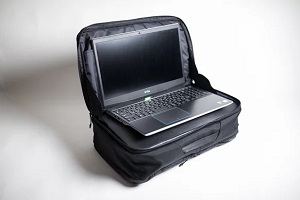 外出時に「一瞬PCを使いたい」と思った際に便利なバックパックで、PC専用収納部を開くとデスクになる。底面に滑り止め素材とパットを敷いており、安定したタイピングが可能。17.3型までの大型ノートも収納できるようになっています。カバー内側にA4ノートとモバイルルーター用のポケットも装備。上下横のどの方向でも出し入れが可能。PC専用収納部を開いた際にショルダーが動かないように固定することもできます。