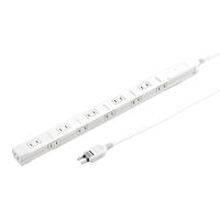 スリムタイプの2Pタップで、11個の差し込み口を備えています。差し込み口を上面、側面に交互に配置し、各差し込み口の間隔を50mm開けたことで、ACアダプタを差し込んだ場合でも隣に干渉することがありません。