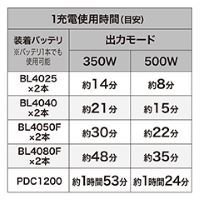 庫内容量8Lで大きな弁当も入るサイズ。「40Vmax リチウムイオンバッテリ」が1個あれば、場所を選ばずどこでも温めることができます。バッテリは2個装着可能で、「BL4080F」(別販売品:8.0Ahの40Vmax リチウムイオンバッテリ)を2個使用すれば、満充電で冷蔵弁当(500Wで3分間)を約11回、飲み物(200ml)(500Wで1分35秒)を約20回温めることができます。