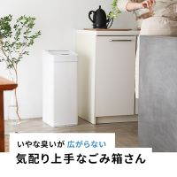 ごみ箱を開けた時のイヤな臭いが広がる不快感を解消できる 「気配り上手なゴミ箱さん」。シャッター式のフタが横にスライド開閉し、パカっと上に開くフタのゴミ箱に比べて圧倒的に臭いが広がりにくい仕組みになっています。アスキーストアで販売中、価格は7,909円です。