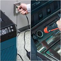 バッテリー1個で稼動し、2個まで装着可能。別売の8.0Ahタイプ「BL4080F」を2個使用すれば、1部屋モードで保冷約48時間/保温約18時間30分、2部屋モードで保冷約18時間使用できるという。またバッテリーのほか、シガーソケット、AC100V家庭用電源にも対応。