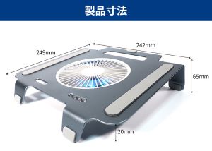アルミ板を曲げ加工したシンプルな構造は、軽量でありながら十分な剛性を持ち、ノートPCを置いた際の高い安定性を確保します。また、最大2400rpmのファンにより効率的な放熱を行うことで、熱によるPC性能の低下を最小限に 抑えることが可能です。