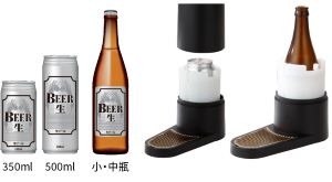 市販の350/500ml缶ビール、小/中の瓶ビールに対応。付属の氷点下保冷剤を冷凍庫で凍らせてサーバーに取り付け、ビールを容器ごとセット、あとはレバーを手前に倒すだけでクリーミー泡のビールを注ぐことができます。
