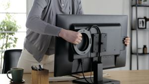 動画配信やオンライン会議に最適なマウントタイプのリングライト。ライトをモニター裏に取り付けられるため、三脚なしで使用でき、デスクのスペースを広く使うことができます。VESA規格のネジ穴があるスタンド付きモニターに対応し、付属のネジは硬貨(コイン)などで簡単に取り付けられるため、工具は不要。