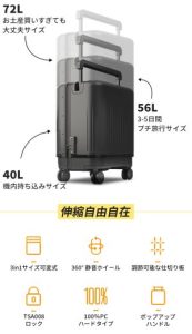 機内持ち込み40Lから最大72Lまで縦に拡張するスーツケース