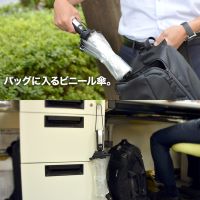 ビニール傘なのにバッグに入る抜群の携帯性。約60cmの親骨や、直径100cmを超える傘生地のおかげで、バッグを背負っていてもしっかり体全体をカバーしてくれます。