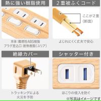 コード長は約2m。ACコンセントは4口で、ホコリの侵入を防ぐシャッター付き。うち1口は間隔が離れているため、大きめのACアダプターも接続しやすい。1口ごとにスイッチが付いていて、使わない製品の待機電力を効率よくカットできます。