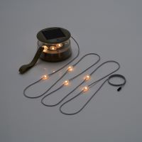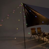 野外でも使用可能な電化製品「野電」シリーズから登場したデコレーションライト。コードをテントやタープに吊り下げて装飾できるほか、収納した状態ならランタンとしても使用できる2WAYタイプ。乾電池は不要で、USBとソーラーで蓄電できます。