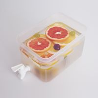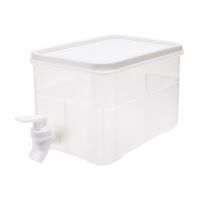四角いタッパー型の容器に蛇口が付いたドリンクサーバー。ドリンクが入った容器を出し入れすることなく、レバーを操作するだけで簡単に飲み物を注ぐことができます。冷蔵庫の棚に省スペースで設置可能。容量は3L。