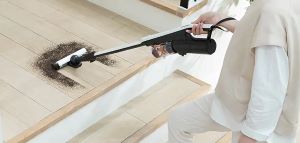 サイクロン式集じん方式を採用したスティッククリーナー。標準質量0.97kgで、1,000mlの牛乳パックより軽いとする。気軽にサッと使えて、高所の掃除なども便利。