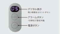 最大60分まで1分単位で設定できる振動タイマー付き。振動式のため、周りの人に気づかれることなくスマートに起きられるとする。なお同機能の使用には、別売の単三形乾電池2本が必要。