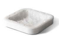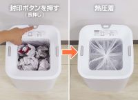ワンタッチでゴミ袋を密閉&セットする全自動ゴミ箱。「封印ボタン」を押すと本体内側のアームが中心に向かって閉じ始め、ゴミ袋以外のものがないかを確認後、再度中心に向かってアームが動きゴミ袋を熱圧着で閉じます。袋を閉じた時点で、次の新しいゴミ袋は専用カートリッジから自動でセットされる仕組み。面倒なゴミ出し作業を軽減し、ゴミに触れずに処理できるため衛生的。