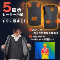 5箇所にヒーターが内蔵されている2023年最新のヒーターベストです。M~XXL(3L)サイズまで対応しているので、女性や細身の男性からサイズの大きい人まで着用することができます。