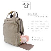 リュックのサイドにはウェットシートが収まるポケット付。除菌シートやティッシュ、お尻ふきなど背負ったままでも取り出すことができます。