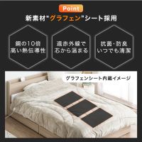 グラフェン素材を使用し、温かく快適に過ごせるという電気毛布。グラフェンは炭素からなるナノ繊維で、ダイヤモンド並みの強度を持ちながらも非常に薄く、軽さとしなやかさも持つ。電気の伝導率は銀より高く、熱伝導率は銅の約10倍あるため、布団に入った直後から朝まで温かい。