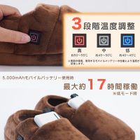 3段階で温度の調整が可能です。5000mAhモバイルバッテリー使用時、最大約17時間と長時間使用することができます。※コードレスで使用する場合、バッテリーは左右で1個ずつ用意してください。