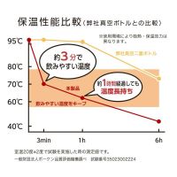 真空2重構造の吸熱材を内側に入れた、ステンレス3層構造のボトル。熱々の飲み物を入れても約3分で飲みやすい温度に下がるため、猫舌の人に最適です。