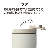 容量は330ml。本体の下にかけて細くなるテーパー型を採用し、誰でも持ちやすいように配慮しています。フタをスライドさせて飲み口をロックできるほか、フタは180度広げられるため、飲む時に顔に当たらず飲みやすい。