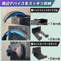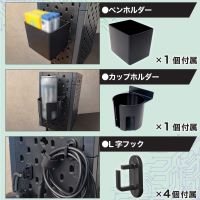 前後左右の4面に有孔ボードを備え、付属のアタッチメントを使ってさまざまなグッズを置ける製品。アタッチメントにはヘッドフォンスタンド2種、コントローラスタンド、ペンホルダー、カップホルダー、Lフックが付属します。