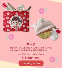 フラットなポーチ(1,100円)のほうには背面にティッシュを入れることができます。こちらもミルキー型のオリジナル引手が付いています。ポーチサイズは140×110mm。