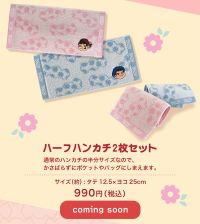 ハーフハンカチ2枚セット(990円)は、ペコちゃんとポコちゃんの刺繍がポイント。各250×125mmのコンパクトサイズなので、かさばらずポケットやバッグにしまいやすくなっています。