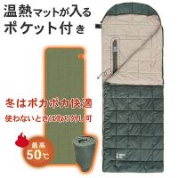 極寒でも活躍できる脱着可能な温熱マット内蔵寝袋(オールシーズン対応)寝返りもできて扱いやすい封筒型の寝袋。ポーチ付属で小さくしまえて荷物になりません。温度調整しやすい封筒型と温熱マットの組み合わせで1つで春夏秋冬に対応します。